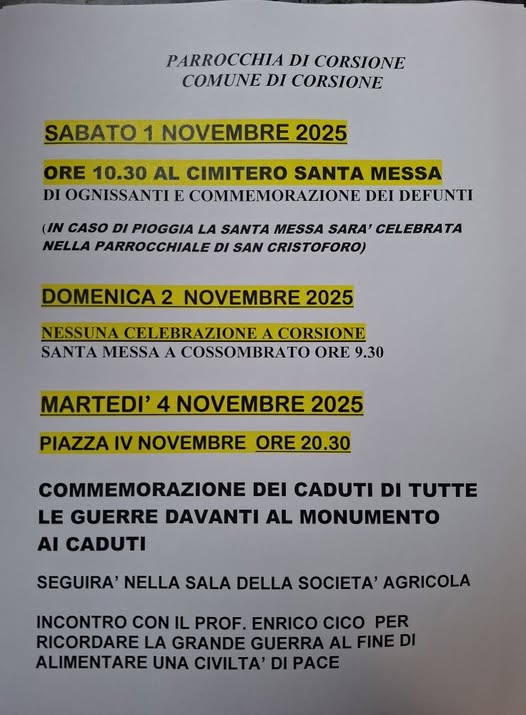 PROGRAMMA OGNISSANTI E GIORNATA DEI CADUTI DELLE GUERRE